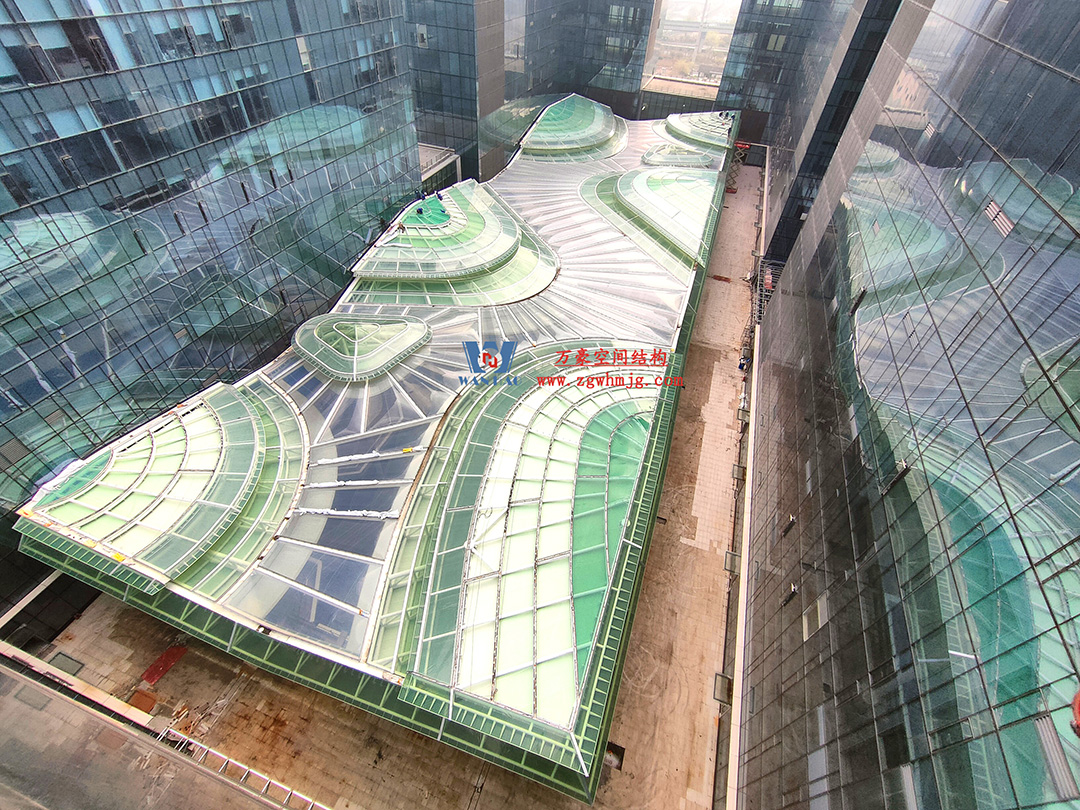 博多森谷項(xiàng)目中庭鋼膜結(jié)構(gòu)工程位于余杭區(qū)良渚板塊,地處杭州城北,良渚未來(lái)核心區(qū),城西科創(chuàng)大走廊輻射圈。該項(xiàng)目用鋼量約689噸,ETFE+網(wǎng)格織物膜展開(kāi)面積12000平方米。