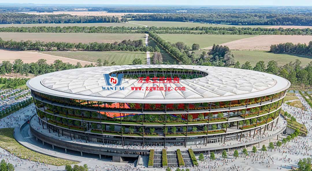 項(xiàng)目設(shè)計(jì)以“花園式”為核心理念,將塞爾維亞的自然地貌、文化傳統(tǒng)與現(xiàn)代建筑科技深度融合,兼具地域特色與國(guó)際視野,打造出全球首個(gè)“花園足球場(chǎng)”。球場(chǎng)主體結(jié)構(gòu)采用四環(huán)型設(shè)計(jì),由鋼索支撐,四個(gè)環(huán)圍繞球場(chǎng)中心,形成獨(dú)特的視覺(jué)效果。球場(chǎng)內(nèi)部三個(gè)樓層均被樹(shù)木和灌木叢覆蓋,營(yíng)造出未來(lái)主義花園的外觀。這一設(shè)計(jì)不僅提升了球場(chǎng)的觀賞性和環(huán)保性,還為球迷提供了更為舒適、自然的觀賽環(huán)境。