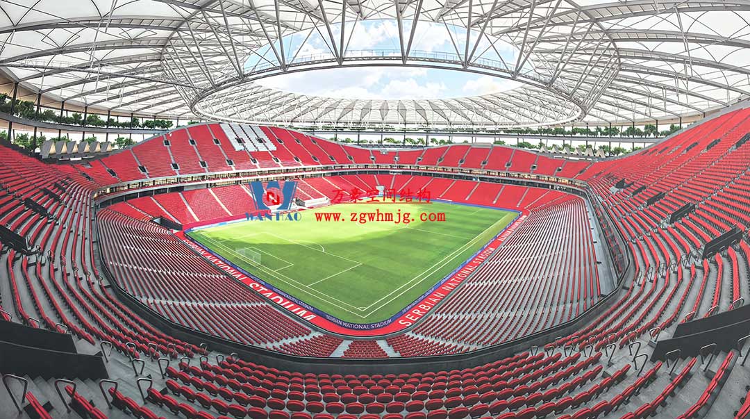 塞爾維亞國(guó)家足球場(chǎng)項(xiàng)目位于貝爾格萊德市西南部,該項(xiàng)目PTFE網(wǎng)格覆膜+PTFE膜展開(kāi)面積40000平方米。